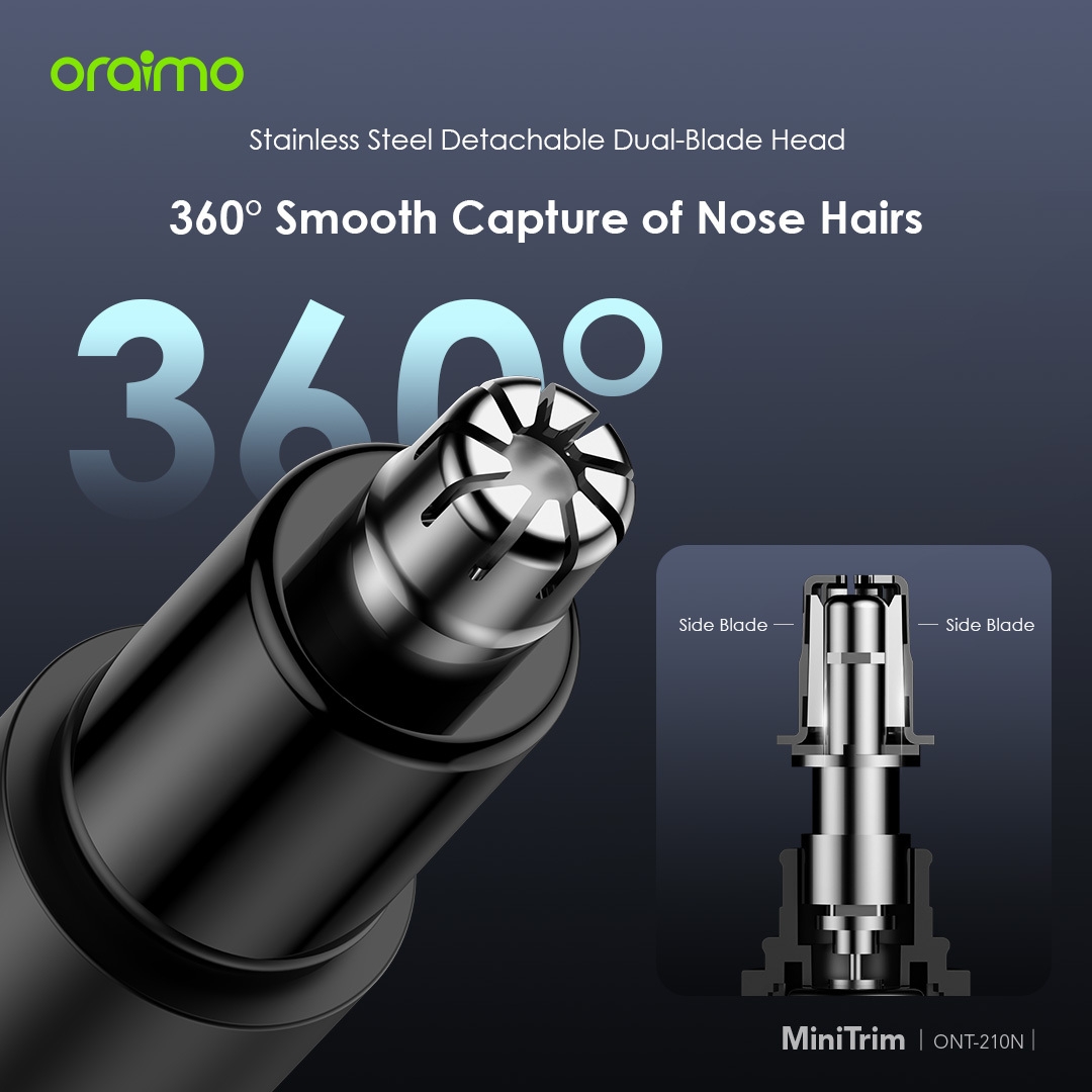 Removable double-edged stainless steel blades for 360° trimming, staying sharp and gentle on your nose.