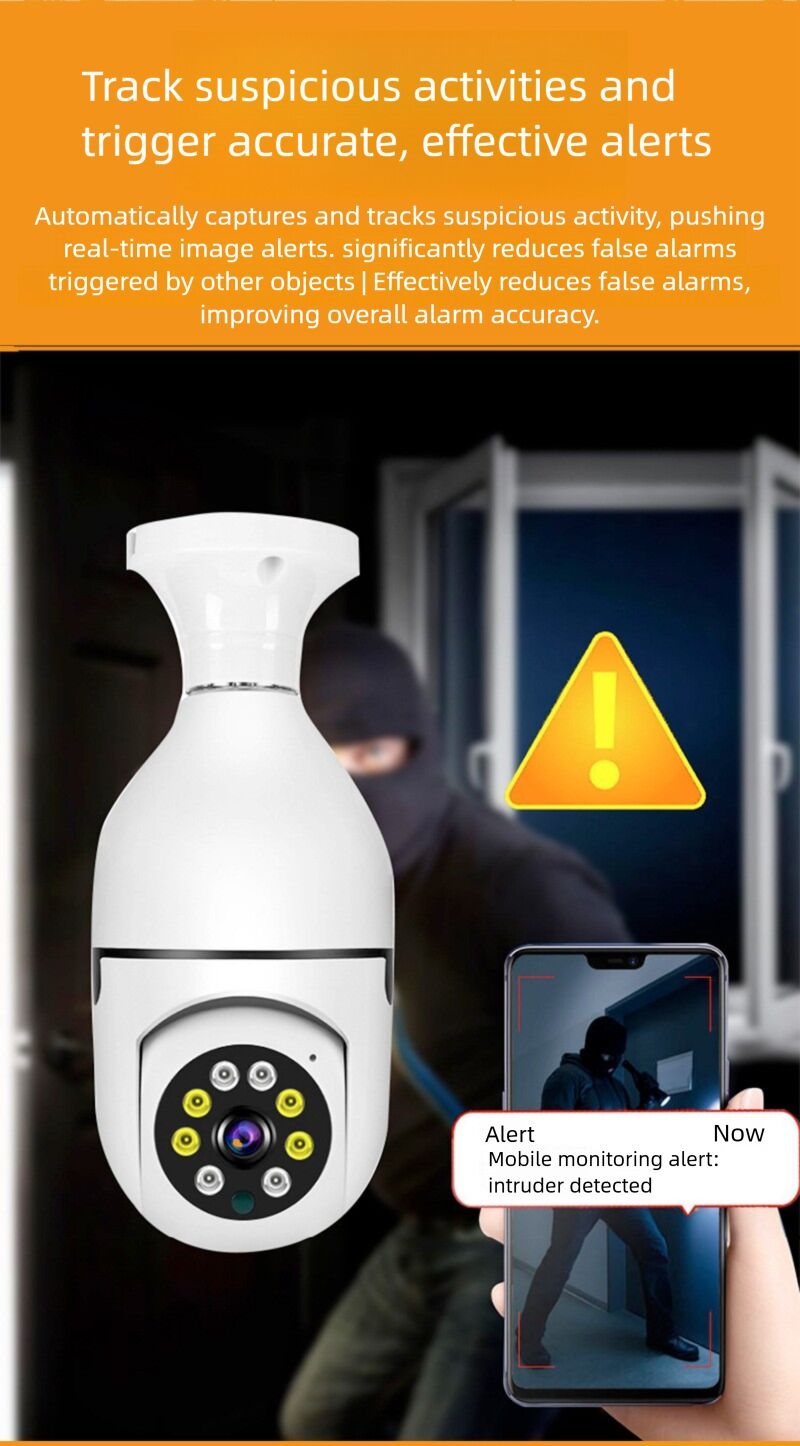the WiFi Bulb Camera supports human motion detection. when any motion is detected, it sends you a real-time notification through the app immediately. you can view the screen detected by the Camera at any time through the app without worrying about missing any moment when you go out, making your home safer.