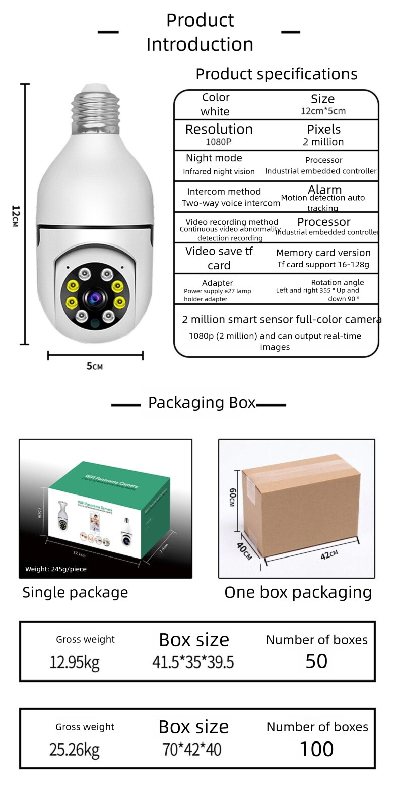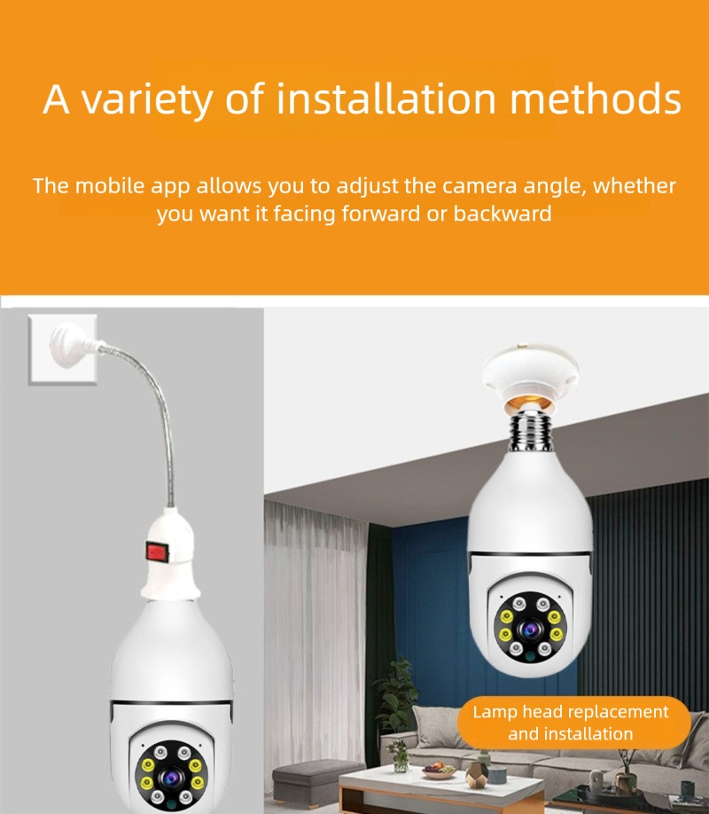 This wireless indoor camera is easy to set up, just connect to Bulb Camera system to connect the camera to 2.4GHz WiFi (5G wifi is not supported), convenient and practical. Can be installed with normal e27 bulb base without additional installation steps.