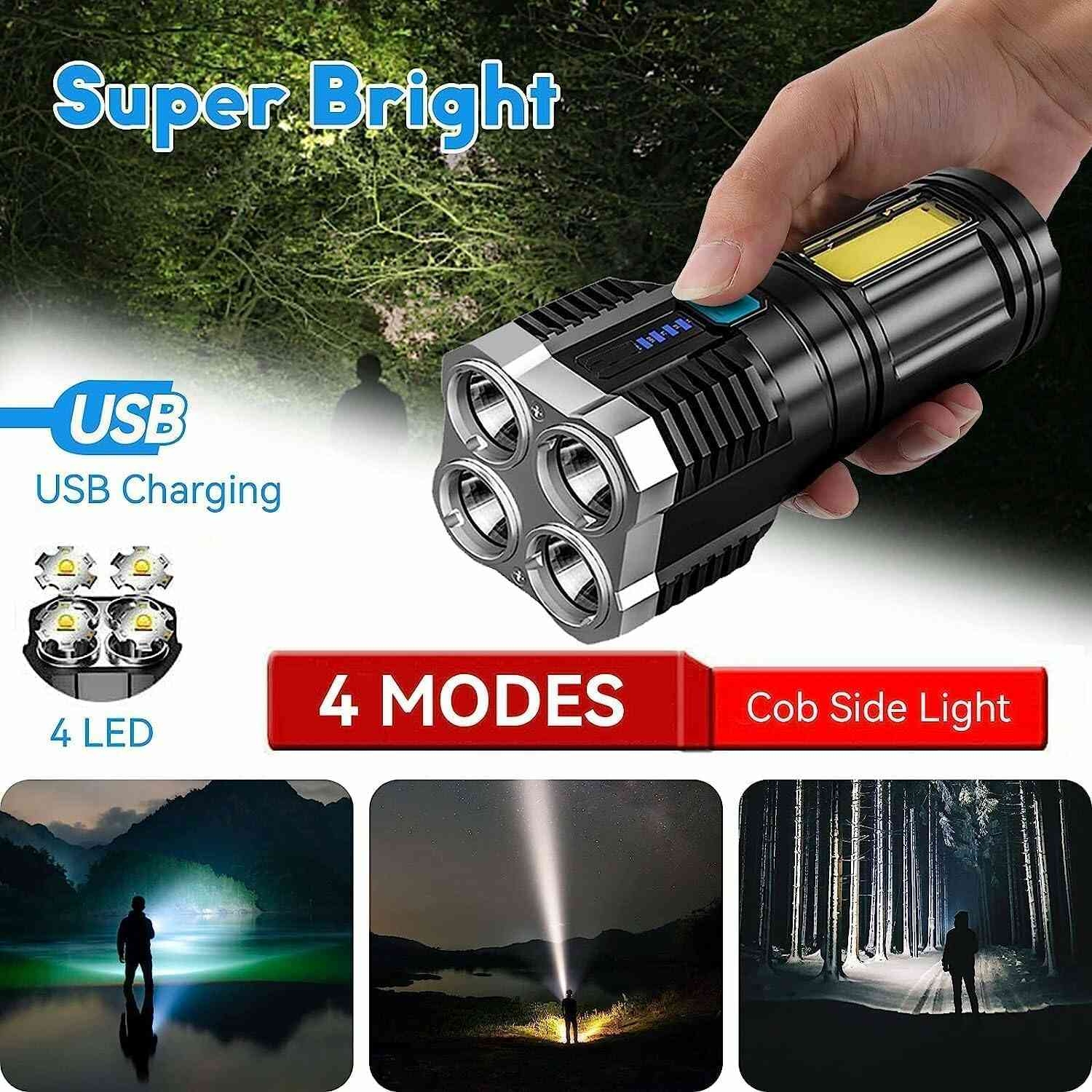 ???? Super Bright torchlight : This torch light high power rechargeable has built-in high-quality LED and COB lamp beads, super bright and strong light transmission, This rechargeable torch range up to 400m, powerful super bright lamp beads, durable.