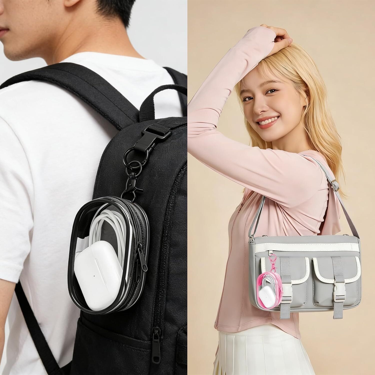 1XPack Storage Bag for Organizing Data Cables, Earphone, Chargers, Keys, Change, Blind Box Doll Transparent Display Bag, Portable Multi-Function Storage (2Pack, Black + Black)