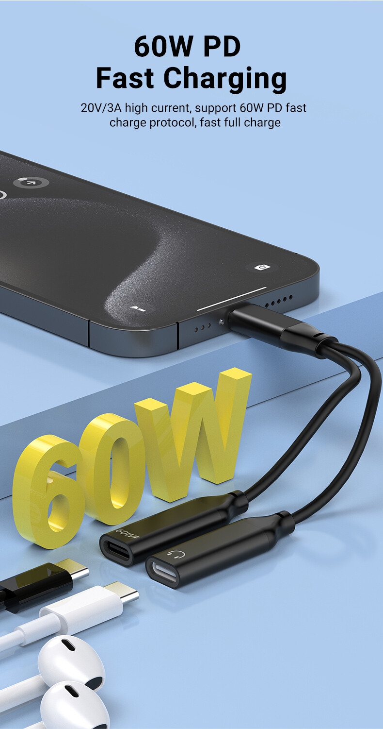 ✔ 2-in-1 Cable: Charging + Audio