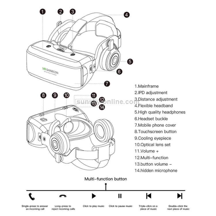 Key Features3D videoVR GlassMaterial: ABS + PCWide angle: 100 degreesObject distance adjustment: 44-54mmSupport 360 degree panorama