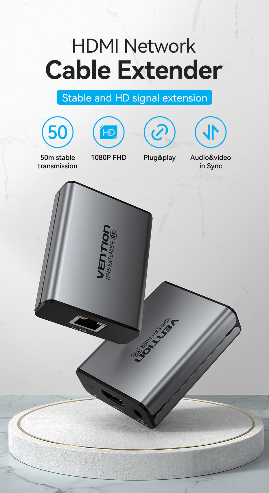 50m Stable Transmission: The Vention HDMI Network Cable Extender extends the HDMI signal up to an impressive 50 meters. This caters to various large-scale setups such as home theaters, multimedia teaching, TV and broadcasting studios, video meetings, outdoor screens, and surveillance systems.
