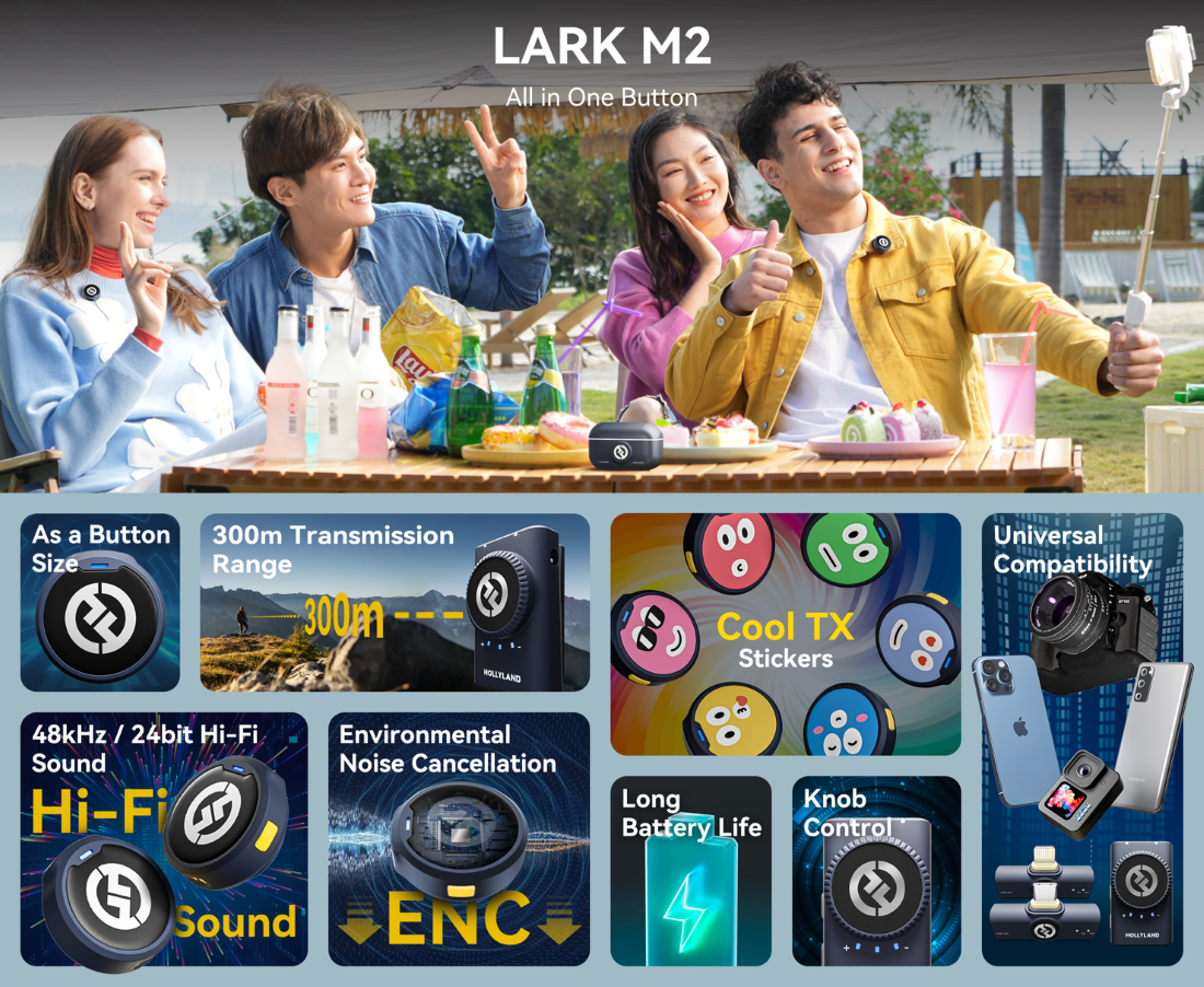 [INCREDIBLY SMALL] Weighing just 9g, LARK M2 wireless lavalier microphone is the lightest mini microphone on the market. With its lossless sound reproduction and top-of-the-line recording capabilities, it brings you unmatched recording performance. The wireless audio transmission can reach up to 1,000ft line-of-sight range. Perfect for filmmakers, vloggers, and podcasters.