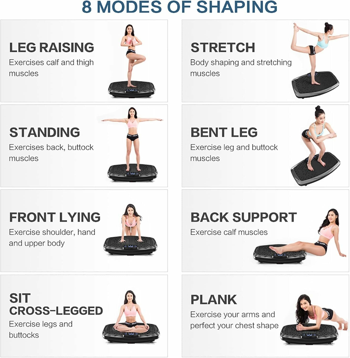 Vibration plate exercise machines have become popular exercise today. It is provides increases muscle mass, reduces body fat and cellulite, perfect for accelerate fat burning and weight loss. Combine it with resistance bands for workout whole body & core workouts, daily whole-body vibration bring same benefit as the outdoor activities or ever better than them. Not only a vibration plate exercise machine, also just like personal massage therapist caring for you and your family body and health.