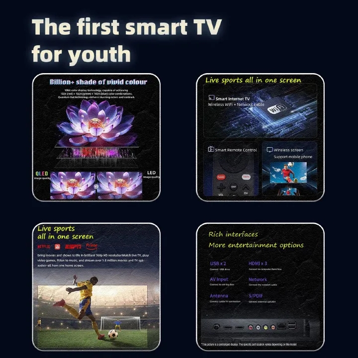 If you are looking for an all-in one TV that saves power at the same time, then VITRON 40 inch QLED Smart android TV is your BEST choice. It has High Definition (HD) video resolution and WiFi-enabled making it amazing for movie lovers who prefer streaming through popular Apps like YouTube and Netflix. Running on android11.0, our Smart Module allows you to enjoy a customized browser and enjoy Optimized Connectivity with 2 USB ports and 3 HDMI ports.