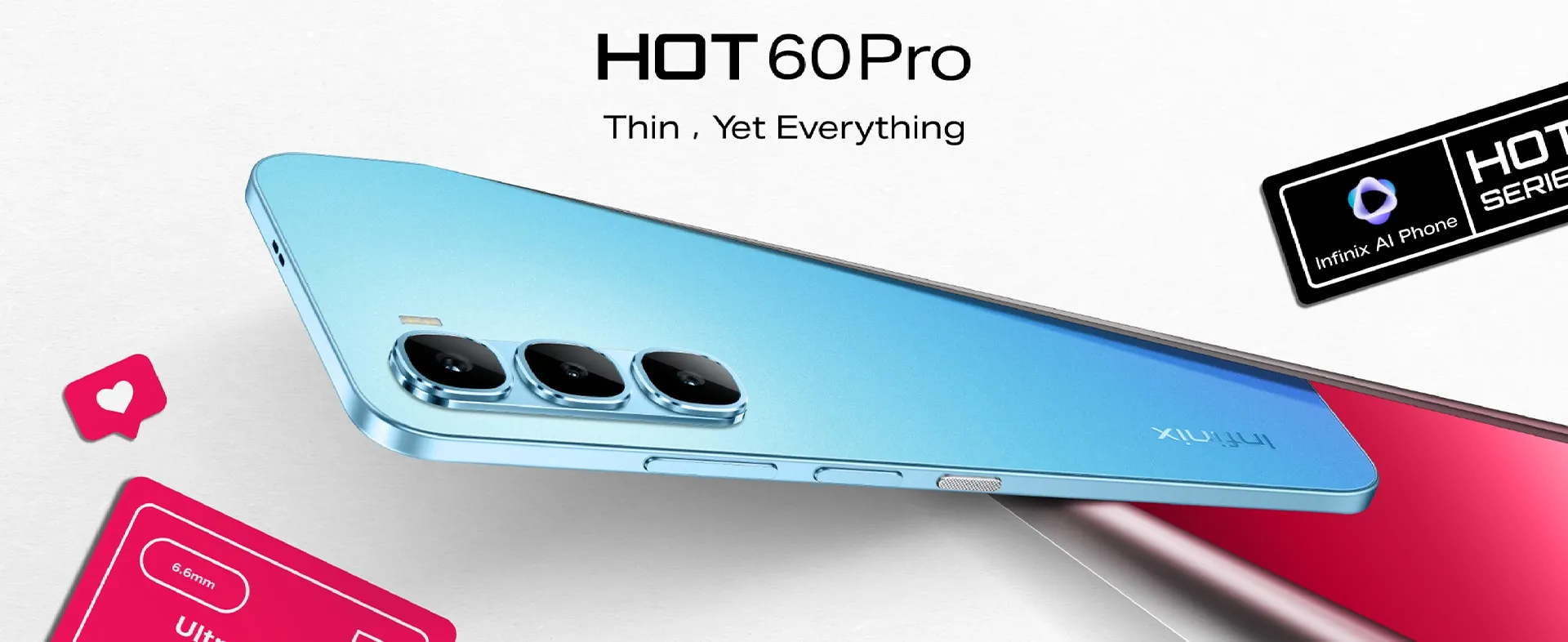 Hot 60 Pro+ features a 6.78-inch IPS LCD with a 120Hz refresh rate, 1300 nits peak, and 1080 x 2436 pixels (~393 ppi density) resolution. Measuring 164.1 x 74.4 x 6.8 mm (6.46 x 2.93 x 0.27 in) and weighing 162g, it is one of the lightest and slimmest smartphones on the market today by Infinix, providing excellent value for its price. Hot 60 Pro Plus runs on Android 14, with up to 1 major Android upgrade, and XOS 14.5 provides a smooth and friendly User Interface. It is powered by an Octa-core Mediatek Helio G100 (6 nm) processor, equally well equipped for multitasking and gaming. The device’s 128GB 8GB RAM and 256GB 8GB RAM anchor it, with the model variants having a microSDXC (dedicated slot) for memory expansion.