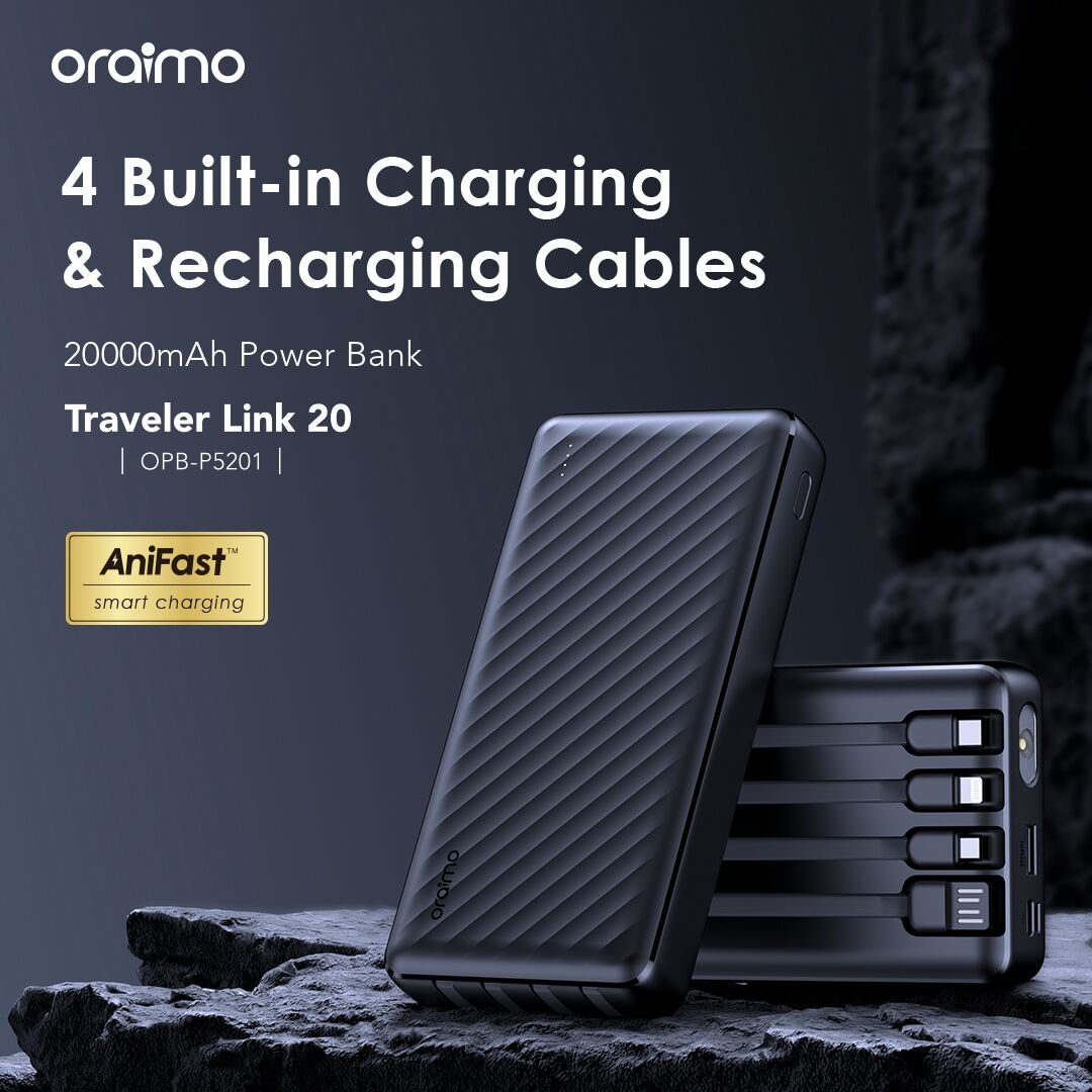 Traveler Link 20 comes with built-in Type-C, Micro-USB, and Lightning charging cables to meet your daily charging needs. What's more, a USB-A cable is included for easy recharging.