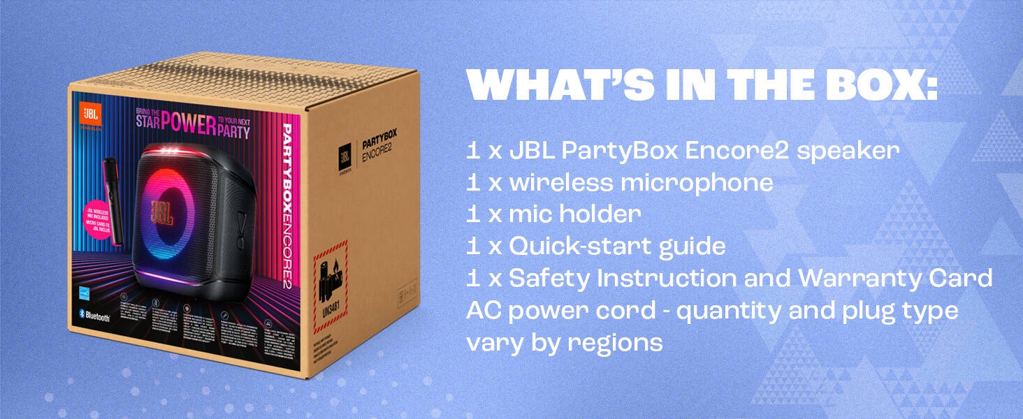 HomeElectronicsHome AudioPortable SpeakersBluetooth SpeakersPartybox Encore 2, Wireless Bluetooth Party Speaker with 2Pcs Wireless Mic, 15 Hours of Playtime, IPX4 Splashproof, Pro Sound with AI Sound Boost and Auracast Multi-Speaker Connection, Black