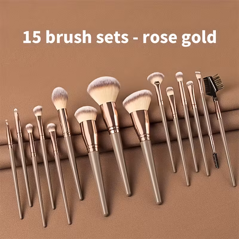 Excellent 15pcs brown makeup brushes offer a wide range of brushes and meet all your makeup needs;which is perfect for makeup beginners or professional makeup artist.
