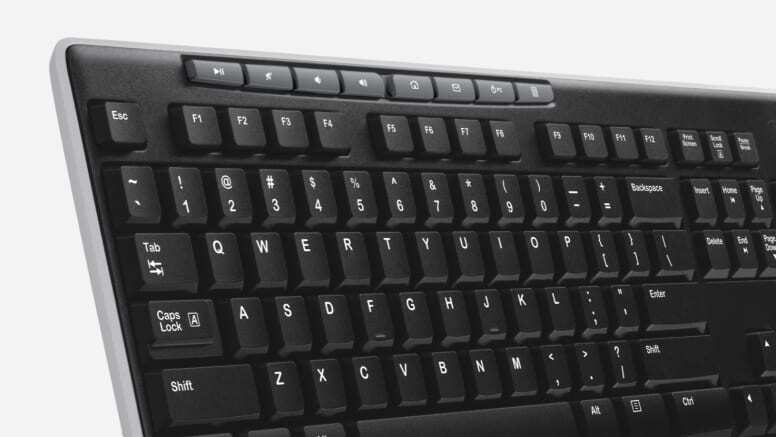 The full-sized keyboard includes a number pad and eight convenient shortcuts, making data entry and navigation a breeze - with easy access to the internet, e-mails, music and more. The sturdy tilt legs let you adjust the keyboard height to your liking