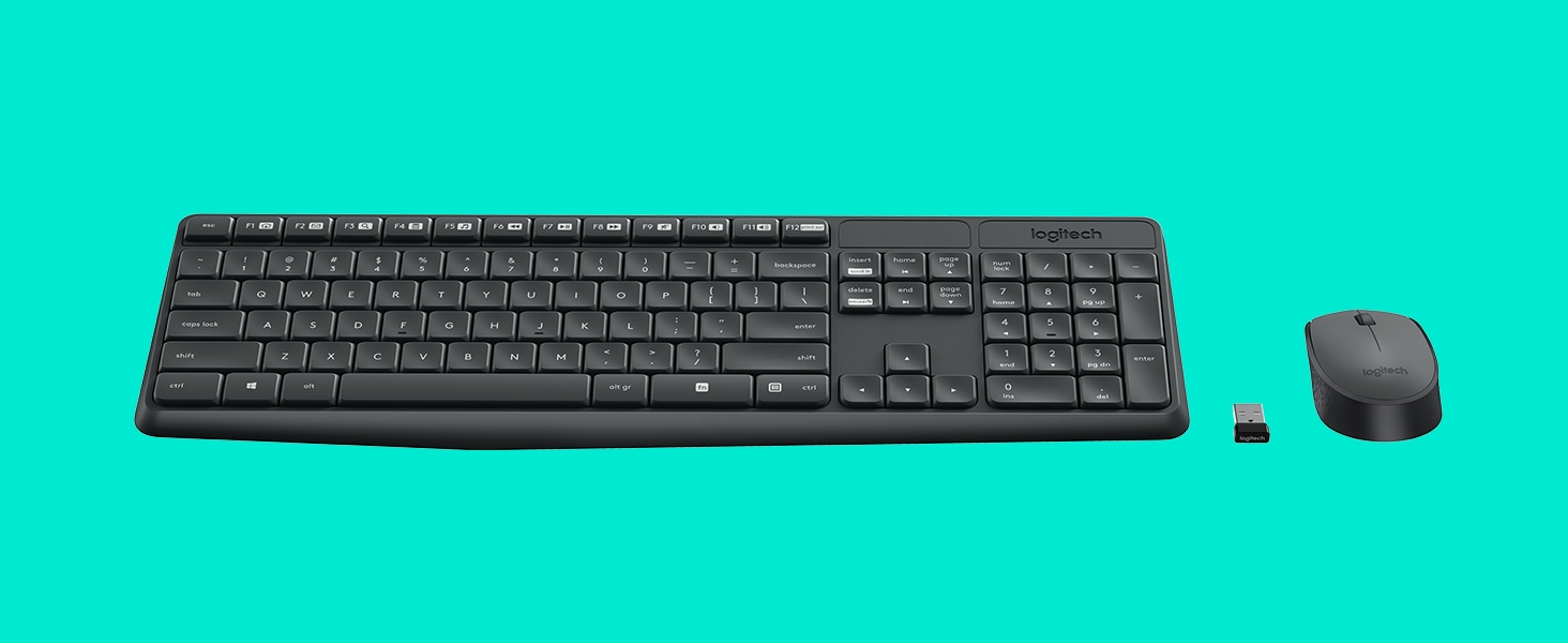 You want to type, browse and navigate without wires, hassles or tricky features slowing you down. MK235 keeps everything simple. Type away on the familiar full-size keyboard layout you already know. Click and scroll effortlessly with a hand-friendly mouse. Plug in a single wireless receiver and go.