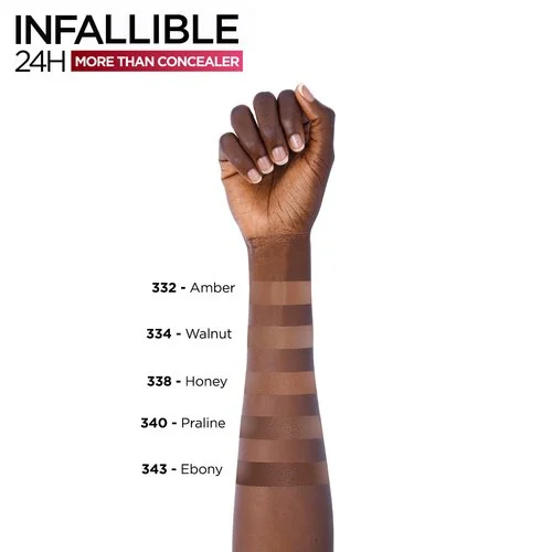Infallible 24H More Than Concealer’s high pigment elastic formula gives you a full coverage finish with a lightweight feel. The longwear formula doesn't crease or settle into fine lines. Use the doe foot applicator to dab, dot or swipe with expert precision and ease, and blend seamlessly for a natural matte finish. Whatever your concern; blemishes, dark circles, uneven skin tone, we've got you covered with Infallible 24H More Than Concealer.