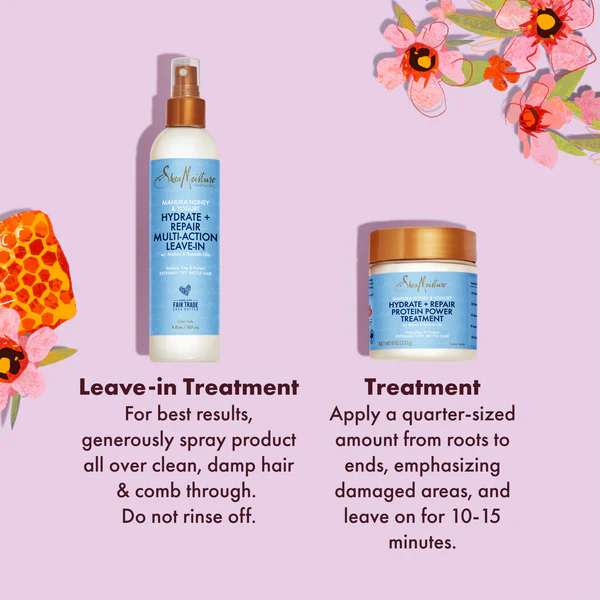 This Shea leave-in conditioner spray helps to prepare your locks for easy styling and it protects brittle hair from heat tool and other styling damage. We've blended the right mix of certified organic Shea Butter, reparative Manuka Honey and Yogurt together in a lightweight treatment that fortifies hair with strand supporting proteins in a natural protective layer. You'll also love the way it fights frizz, especially on the hot and humid days, and you may be ecstatic about how it improves the appearance of split ends.