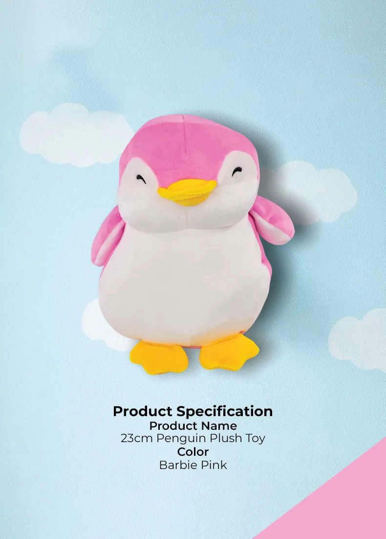 Cuddle Up with the Adorable 23cm Penguin Plush Toy (Barbie Pink)! Bring home a touch of cuddly comfort and playful charm with the 23cm Penguin Plush Toy in Barbie Pink! This adorable plush penguin is the perfect companion for children and anyone who loves soft toys.
