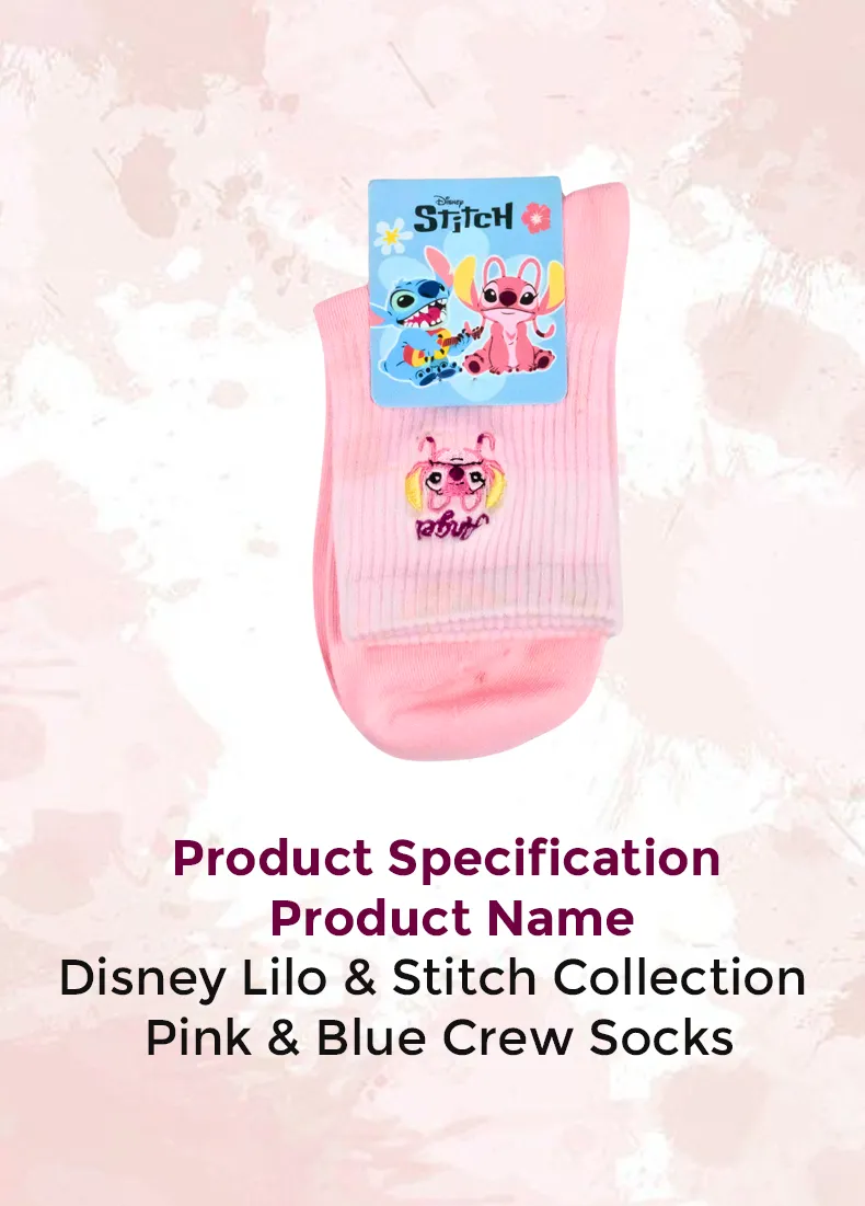 Disney Lilo & Stitch Collection Pink & Blue Crew Socks