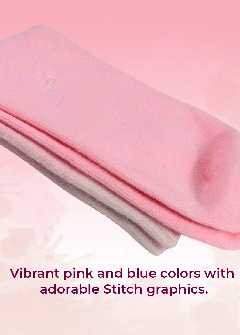Adorable Design: Featuring everyone's favorite troublemaker Stitch and his friend Lilo, these socks come in a vibrant pink and blue color scheme. The cute design adds a touch of fun and personality to any outfit.