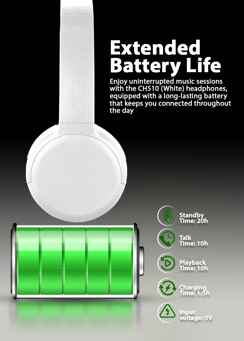 Minimalist Wireless Headset Model: CH510 - White