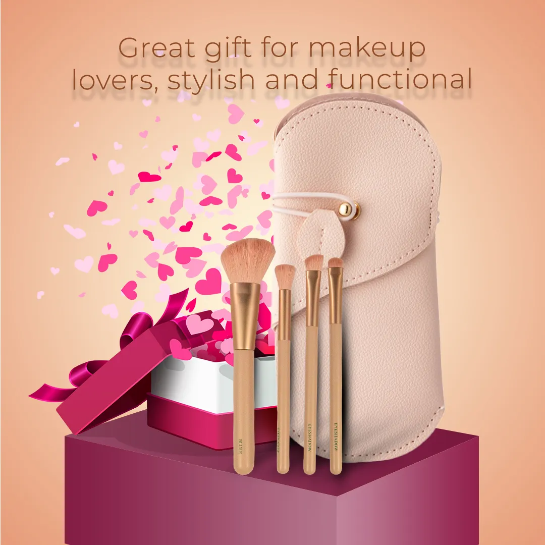 Essential brushes: The 4-piece set likely includes the most commonly used brushes for applying foundation, eyeshadow, and blush, allowing you to create a variety of makeup looks.