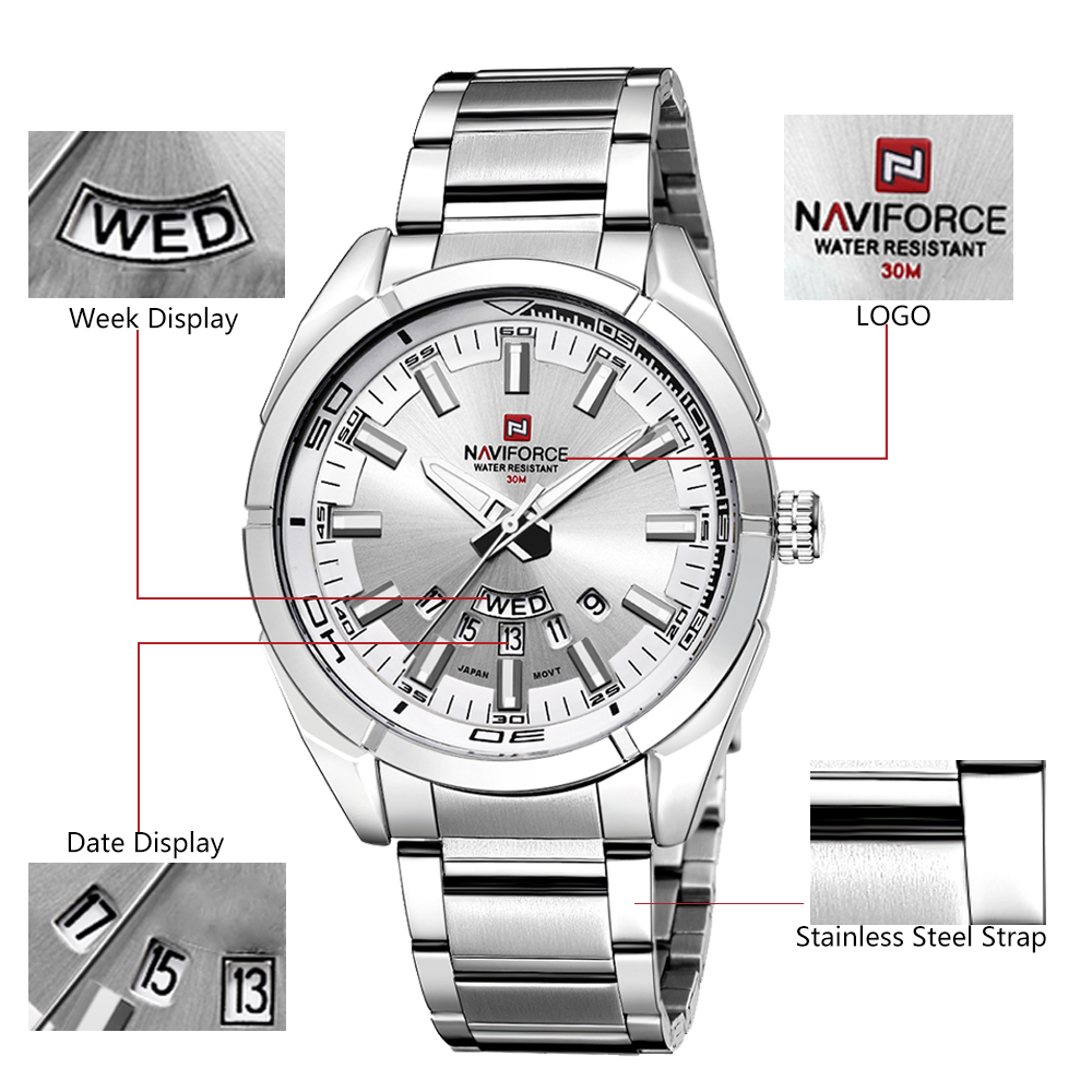 Naviforce Men Business Quartz 30M Waterproof Watches Men's Stainless Steel Auto Date WristwatchesKSh 1,999KSh 2,69726%Add to cart