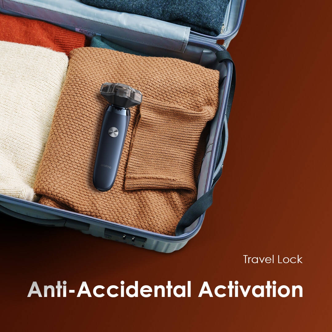 No need to worry about the EasyShave turning on accidentally in your luggage and damaging other items or wasting power.