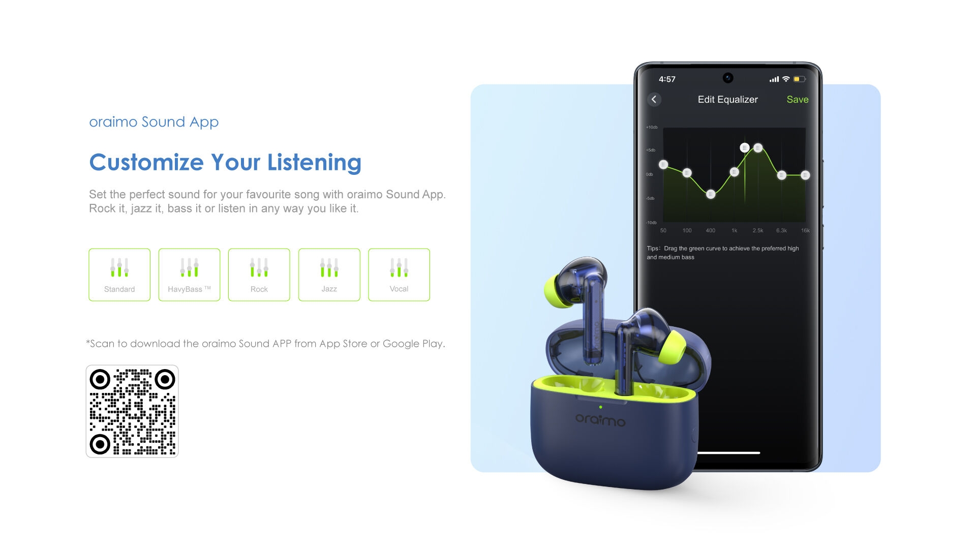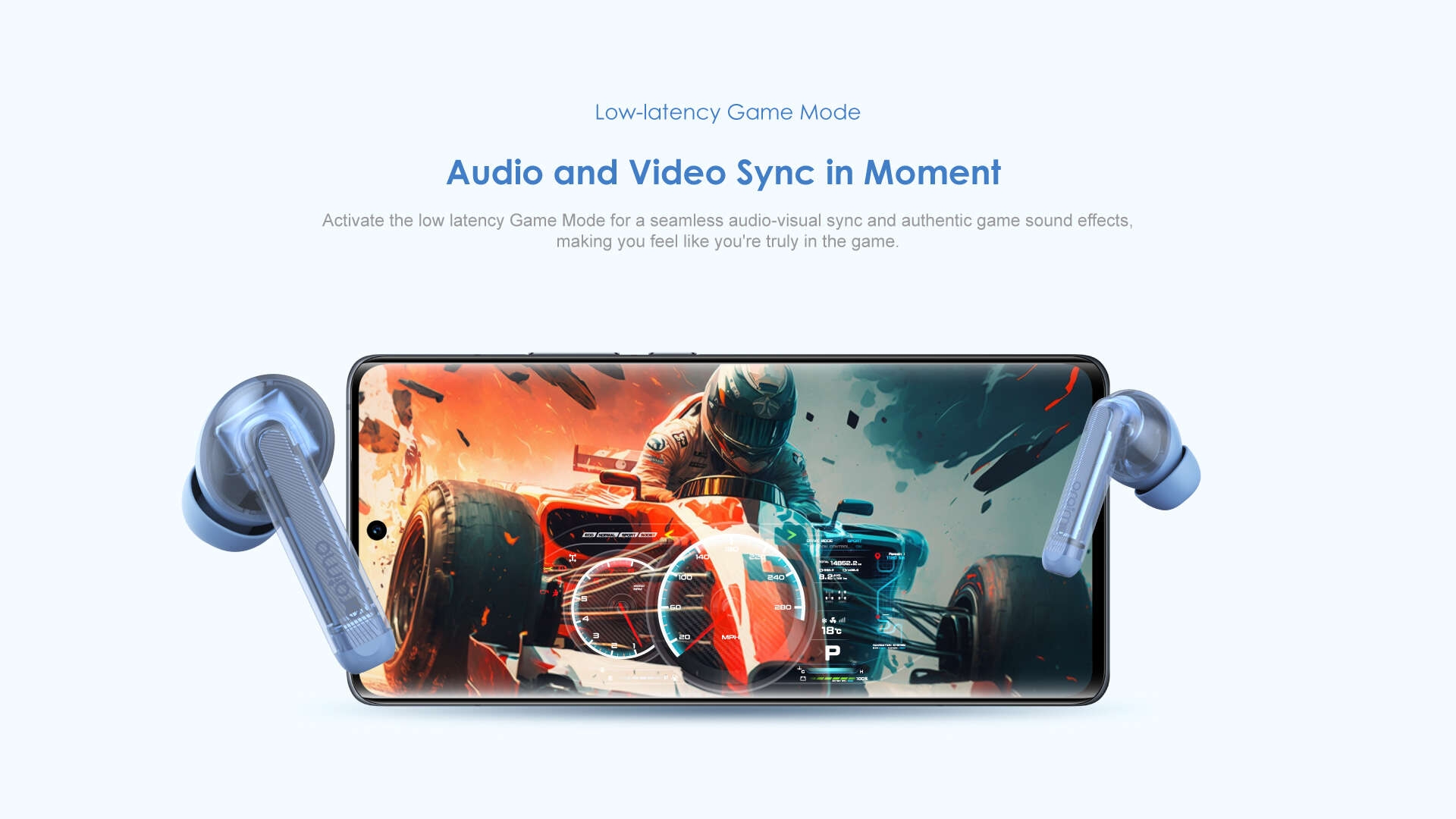 BT Version: V5.3 Wireless Range: 10m Play Time: Up to 8 hours; Case provides additional 32 hours Input: Type-C Model: OTW-330 *oraimo Lab test result