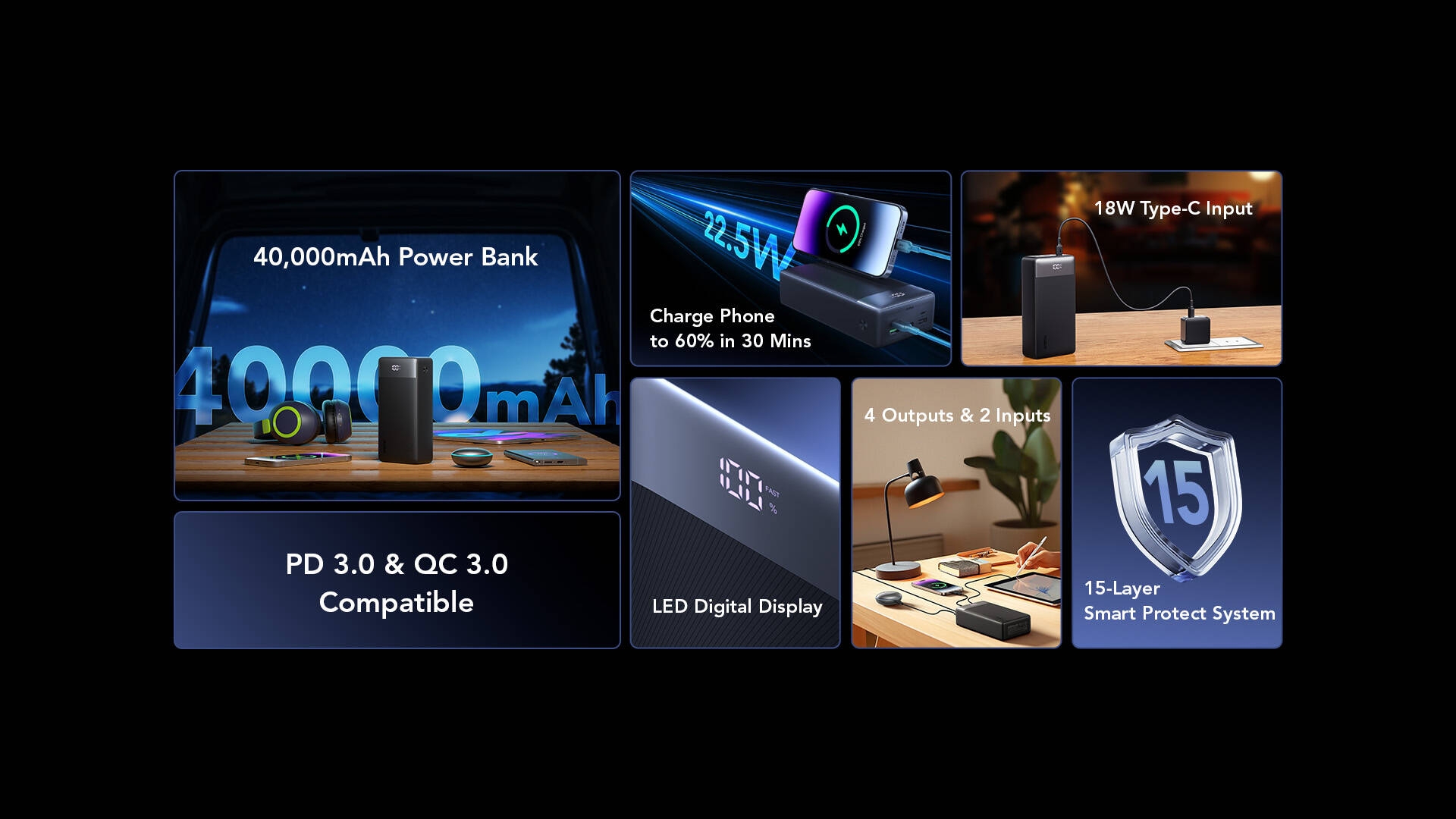 Capacity: 40000mAh (148Wh);