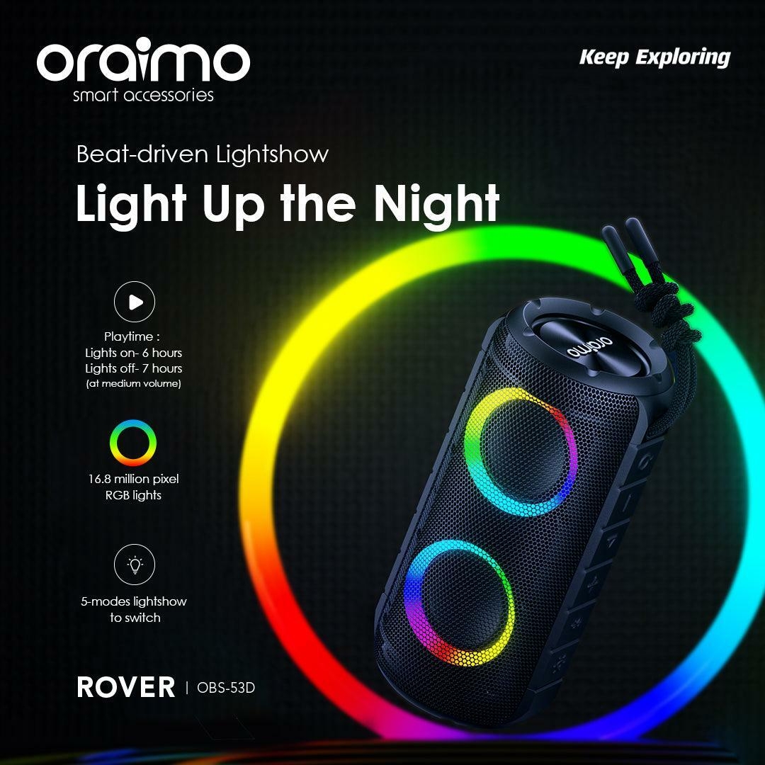 Customized dual 50mm full-range drivers and dual 66mm bass radiators deliver superior stereo sound. oraimo HavyBass™ DSP enhances deeper bass, richer instrument details, crisper voice with dual digital processing chip by acoustics experts. Experience powerful sound with oraimo Rover.