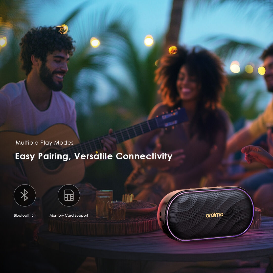 The oraimo SpaceBox delivers powerful oraimo Pro Sound with impactful bass in a compact design, featuring professional acoustic engineering and exclusive HavyBass™ technology.