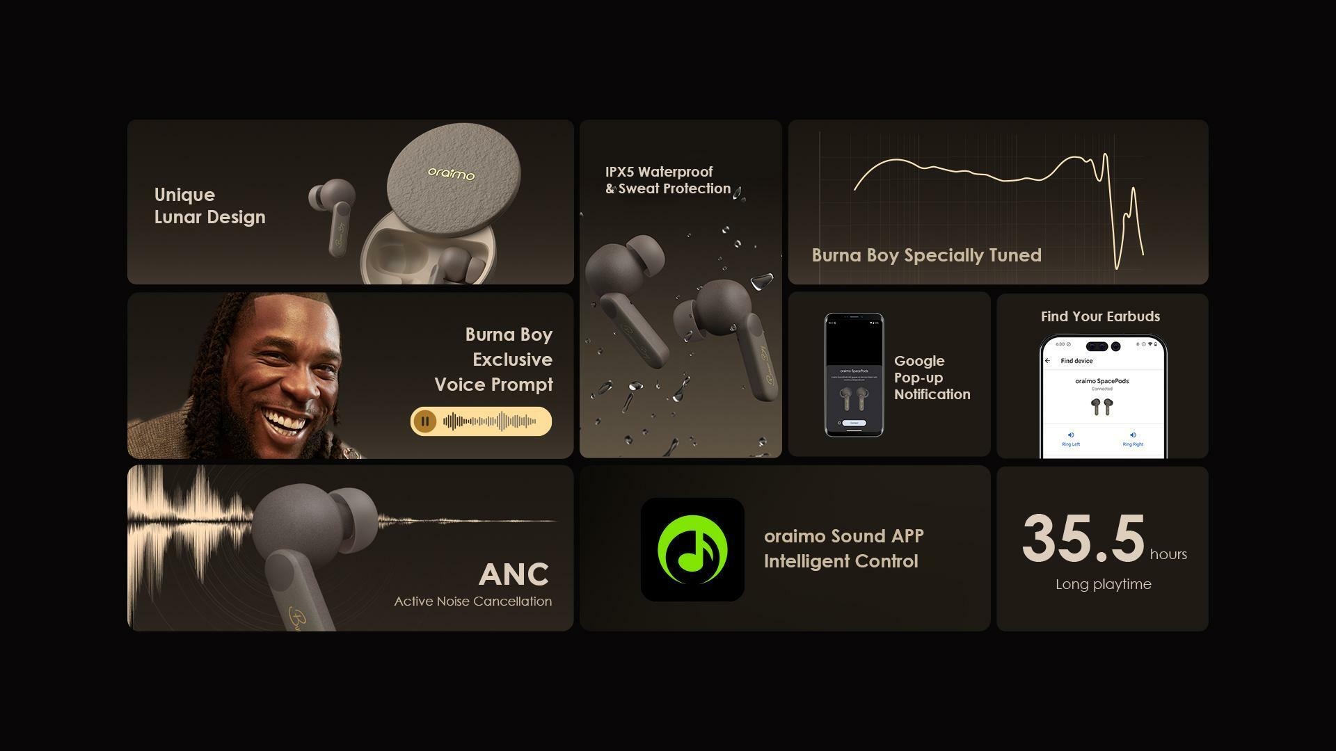 oraimo SpacePods x Burna Boy ANC True Wireless Earbuds