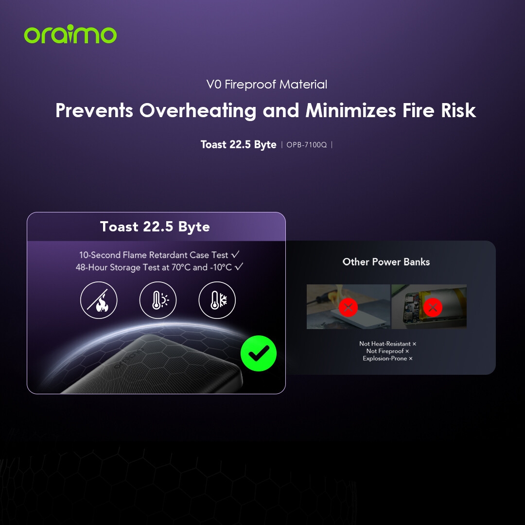 Equipped with oraimo's exclusive AniFast™ chip, this power bank can intelligently identify your device's fast-charging protocol to deliver the fastest possible charge.