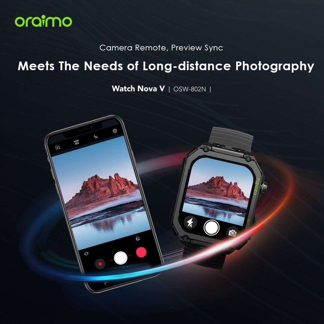 Watch Nova V can sync photography page with mobile phone through the oraimo health app, allowing for camera control and instant preview directly on your wrist. The photography is no longer limited by distance.