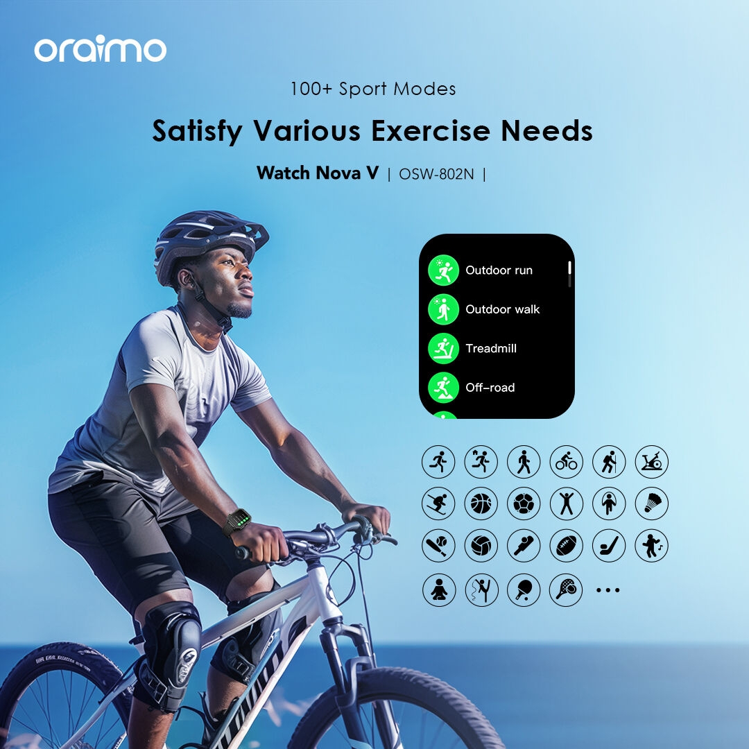 Watch Nova V, featuring more than 100 sports modes such as outdoor running, treadmill, and cycling, meets diverse exercise needs. It accurately tracks your performance during exercise and enables the one-click sharing of exercise data and scenery encountered in sports to social media.