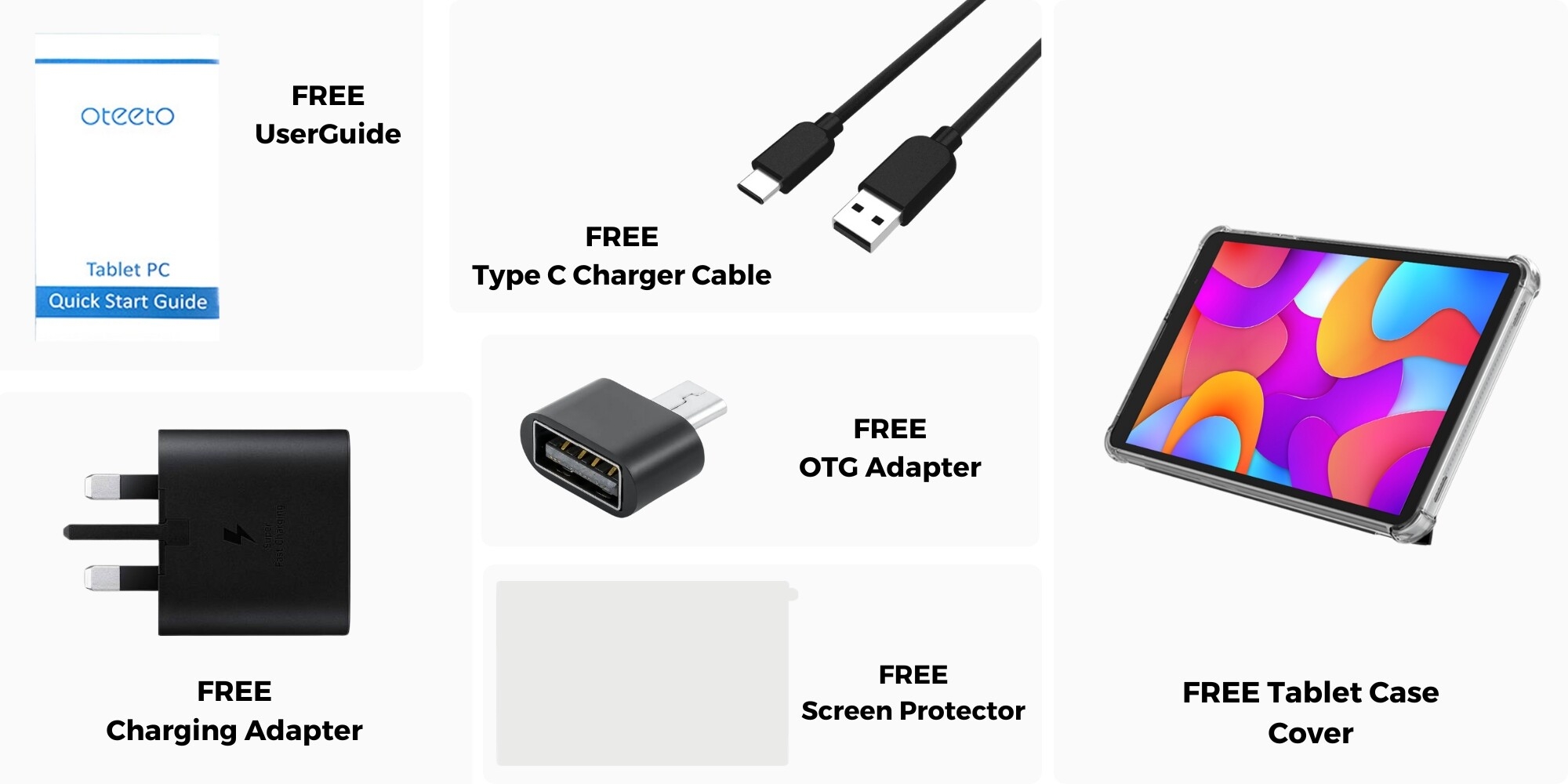 | Box include: | Tablet PC / Charger adapter / Type C Cable / User manual/ OTG Adapter / Case / Keyboard |