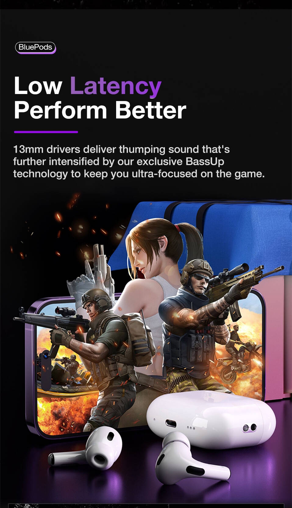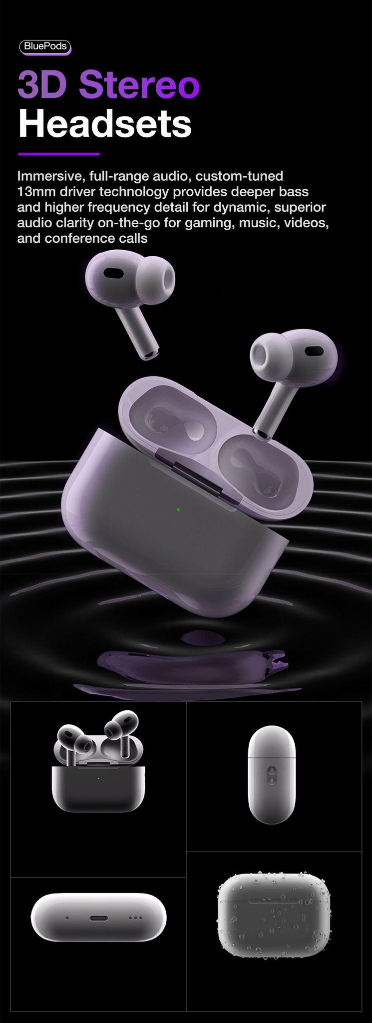 【IPX7 Waterproof】:Earbuds and charging case inner Nano-coating makes it possible to waterproof. It is suitable for sports to prevent water.