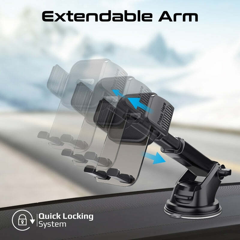 Introducing TransHold-EXT, a revolutionary hands-free solution designed to enhance your driving experience. Its transparent and sophisticated design provides stylish support for your device, seamlessly integrating into your vehicle. Enjoy versatile mounting options—secure TransHold-EXT to your windshield, dashboard, or air vent, ensuring stability and reliability in any vehicle setting. The high-stability cradle mount keeps your device securely in place during bumpy rides, providing a reliable hands-free experience. Find your perfect viewing angle effortlessly with TransHold-EXT's portrait and landscape modes, offering flexibility and optimal visibility. Customize your setup with the extendable arm feature, allowing you to position the cradle exactly where you need it. Experience seamless functionality with intelligent auto clamping, securing your device with a touch, and retrieving it effortlessly with the one-touch release feature. Crafted from durable ABS, Silicone, Acrylic, TPU, and Metal, TransHold-EXT ensures reliability and a sleek aesthetic, making it a stylish and trustworthy accessory for your device. Elevate your on-the-go connectivity with TransHold-EXT, where innovation meets style and convenience.