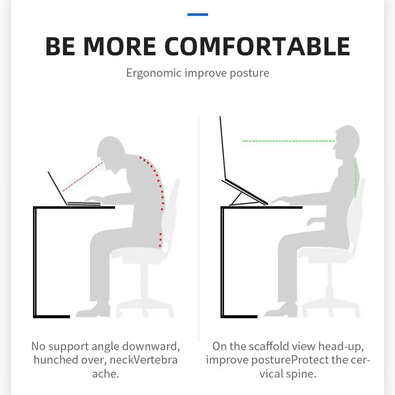 5. Compatibility: This laptop stand is suitable for most devices from 9-15.6in inches. Ergonomically designed for easy viewing and typing, reducing neck, shoulder and spine pain.