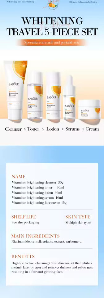 SADOER 5-in-1 Vitamin C Skin Care Sets Facial Cleanser Toner Face Cream Serum Lotion Whitening Moisturizing Face Travel Size Skin CareKSh 850Add to cart