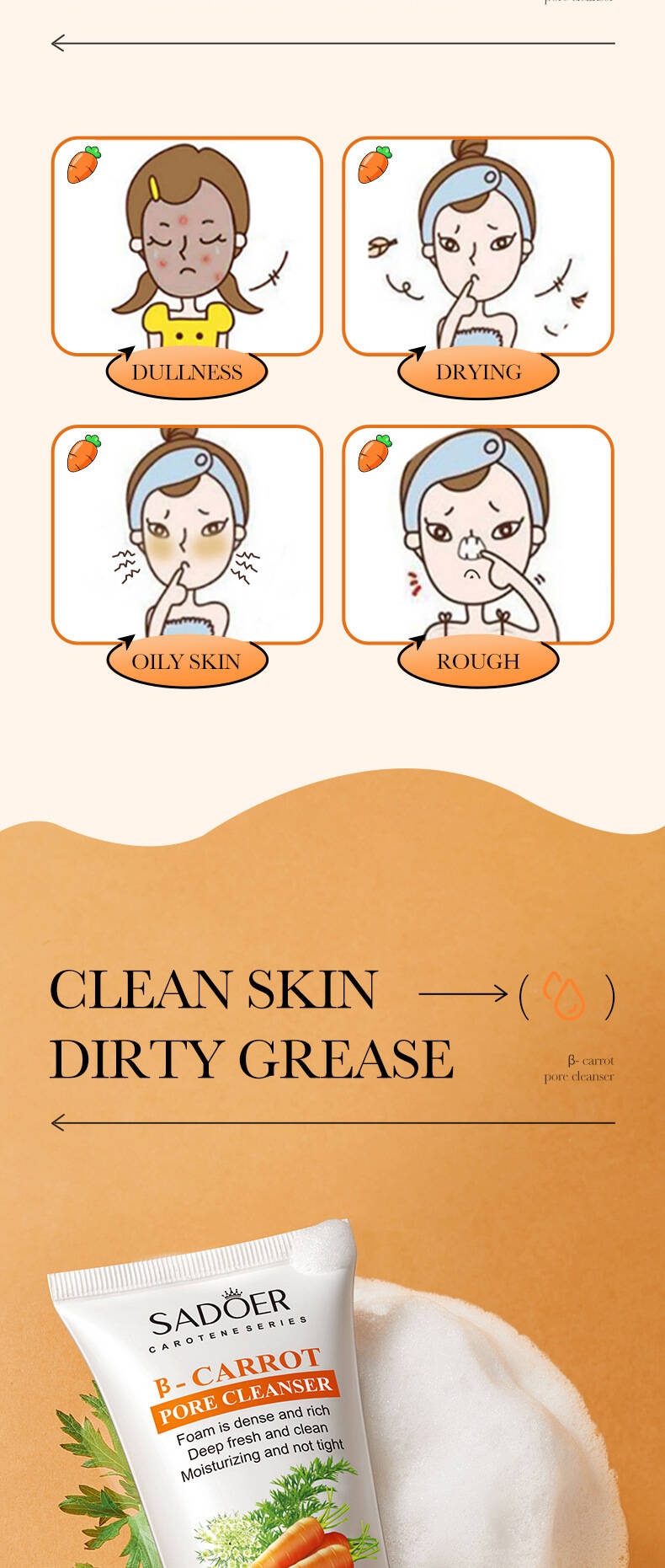 Carrot cleanser effectively removes dirt, oil, and impurities from the skin without stripping it of its natural oils, making it suitable for all skin types, including sensitive skin.