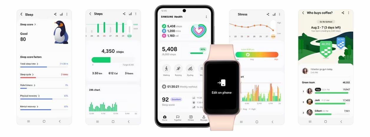 Get a comprehensive view of your workout performance, health progress, sleep patterns and more with the Samsung Health app on your phone. Check your accumulated health data from your Galaxy Fit3 and view it over an extended period on a larger screen.