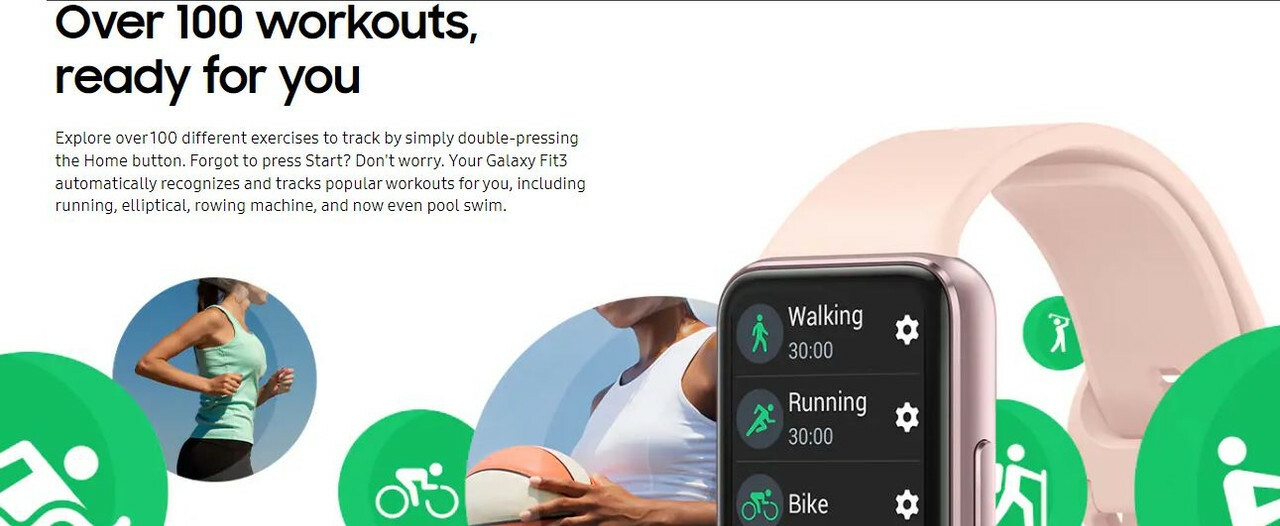 Lasts up to 13 days on a single charge. Sits lightly on your wrist, tracking over 100 workouts and daily activities, including sleep. Lets you play music, check calls and send texts right from your wrist — stay empowered, connected and effortlessly on track with Galaxy Fit3.