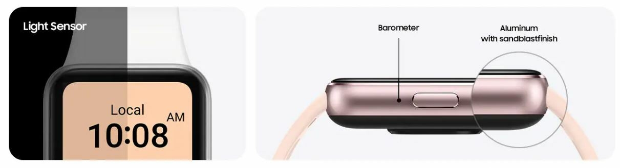 With its sleek and lightweight design, Galaxy Fit3 comfortably fits into your workout routine. The slim aluminum body, as light as 18.5g, won't weigh you down or get in your way during workouts. Plus, 5ATM and IP68 ratings mean it's ready to face raindrops or dust. Look workout-ready and stay fit.