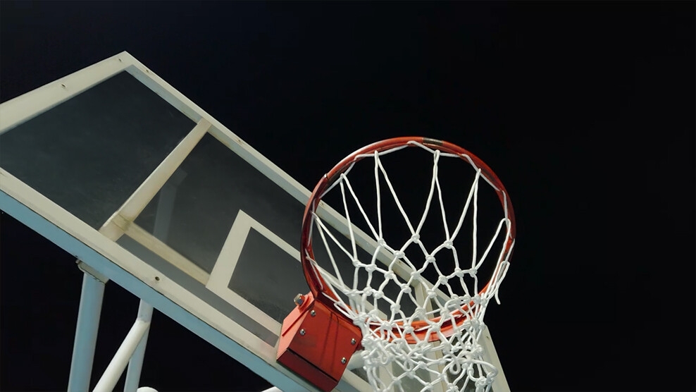 Two subjects play basketball in the evening. The footage is clear thanks to Galaxy S25 plus's camera.