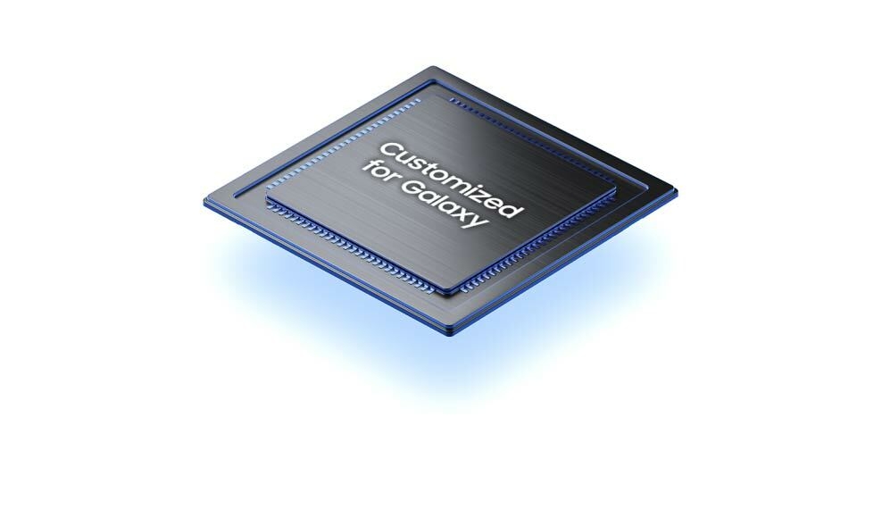 Customized for Galaxy AP is seen floating above the chip board before it rests on top. Various rays of light come out from the AP before transforming into Galaxy S25 plus device. The device is seen horizontal from side profile before rotating to show a scene from Wuthering Waves game on the main screen.