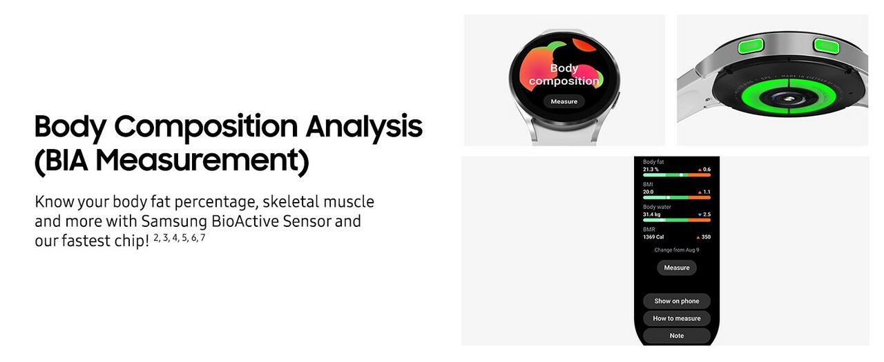 • Bioelectrical Impedance Analysis Sensor for Body Composition Analysis, Optical Heart Rate Sensor.