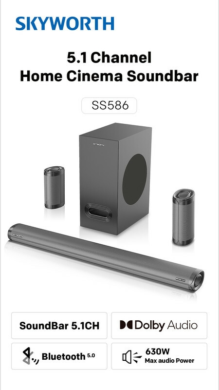 The Skyworth SS586 5.1CH Home Theatre Soundbar System with surround speakers is designed to elevate your home entertainment experience. With a 5.1-channel setup, it delivers immersive and high-quality audio for movies, music, and more. This soundbar system is a fantastic addition to your home theater setup, providing enhanced sound clarity and depth for a more enjoyable viewing and listening experience.