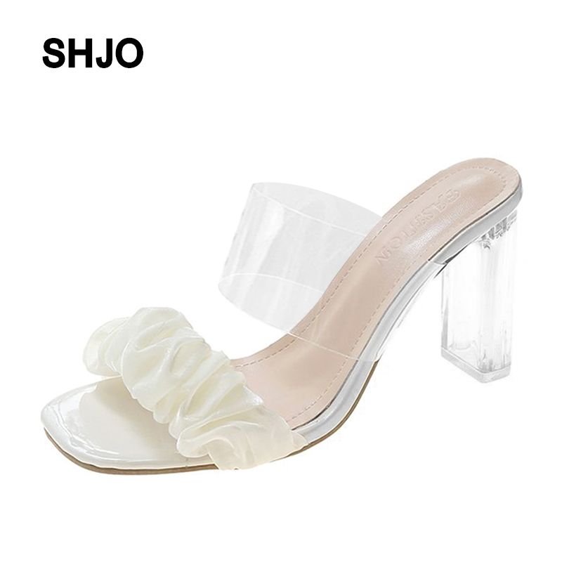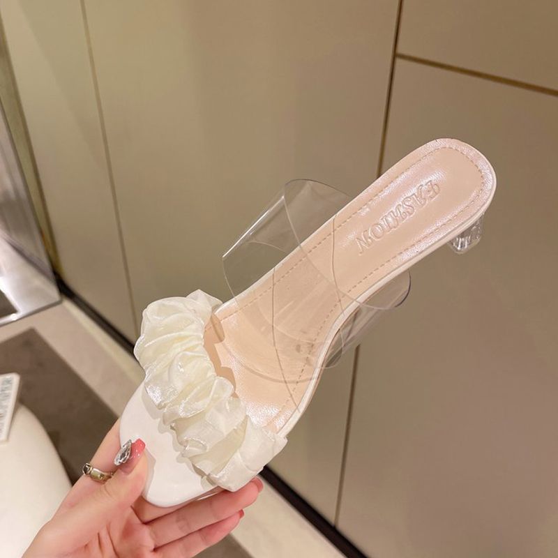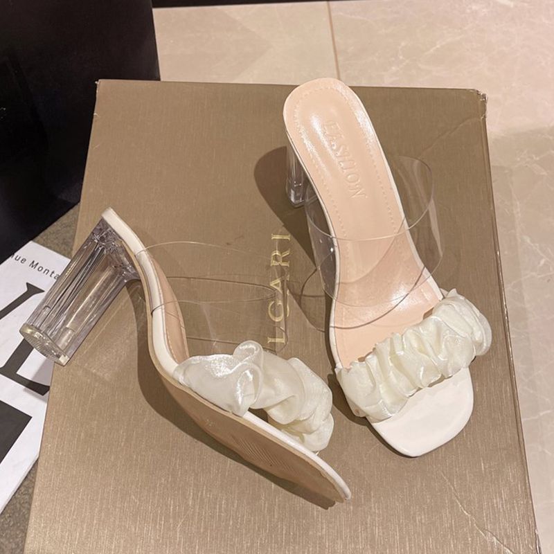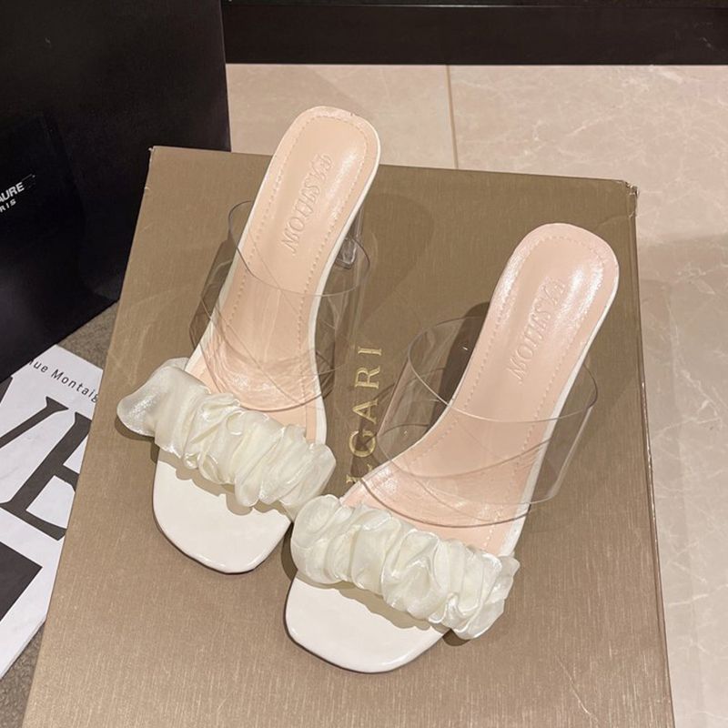 Women's Shoes Sandals Heels Sandals New Korean Style Fairy Style Transparent Thick Heel Square Toe Pleated Sandals Summer High Heel Slippers Sandals
