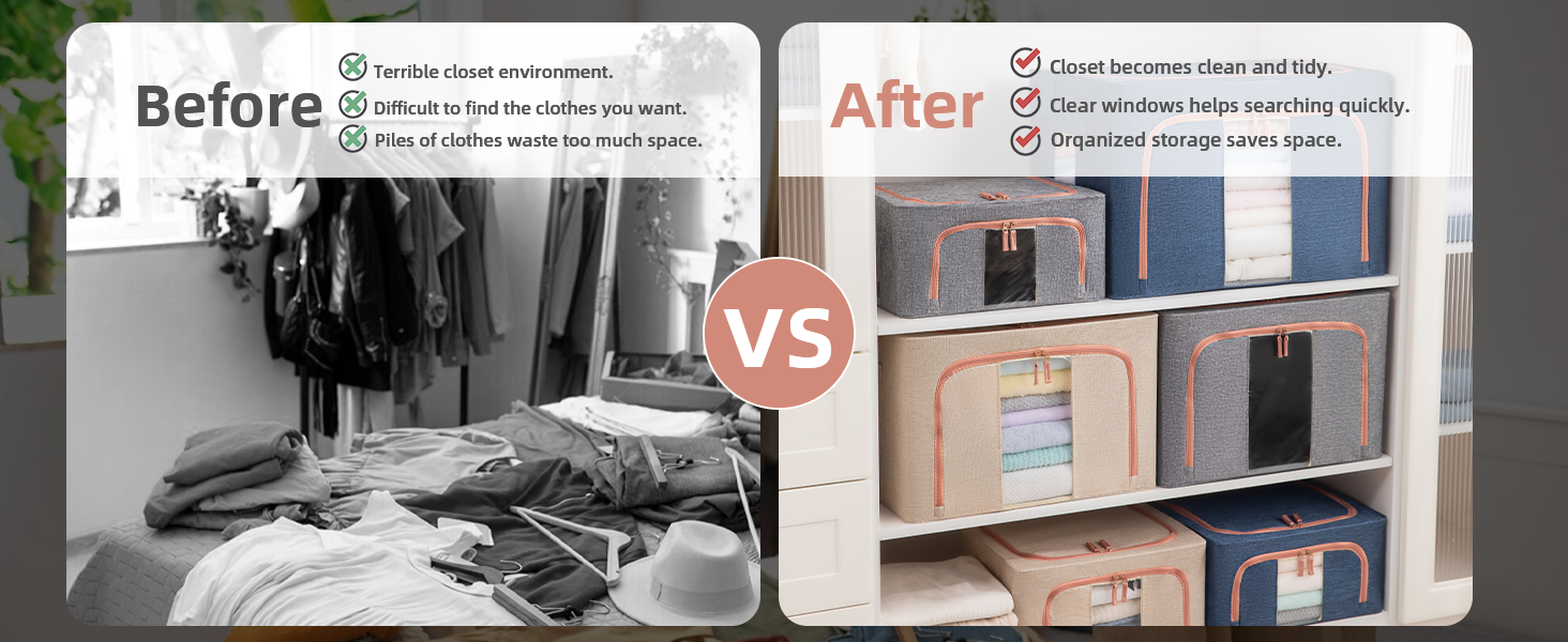 66L Large Capacity: Ample space to store clothes, bedding, seasonal items, and more.