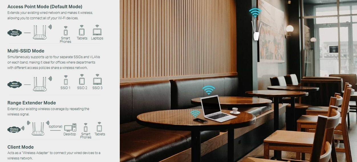 Multiple operation modes are supported to give you full flexibility to tailor the Access Point to fit your network's needs.